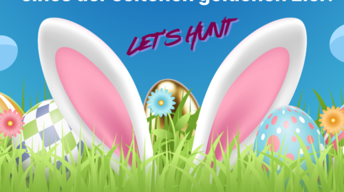 Man munkelt, dass er sogar goldene Eier versteckt hat. Wer eines der seltenen goldenen Eier findet, darf sich auf einen etwas grösseren Schokohasen freuen.